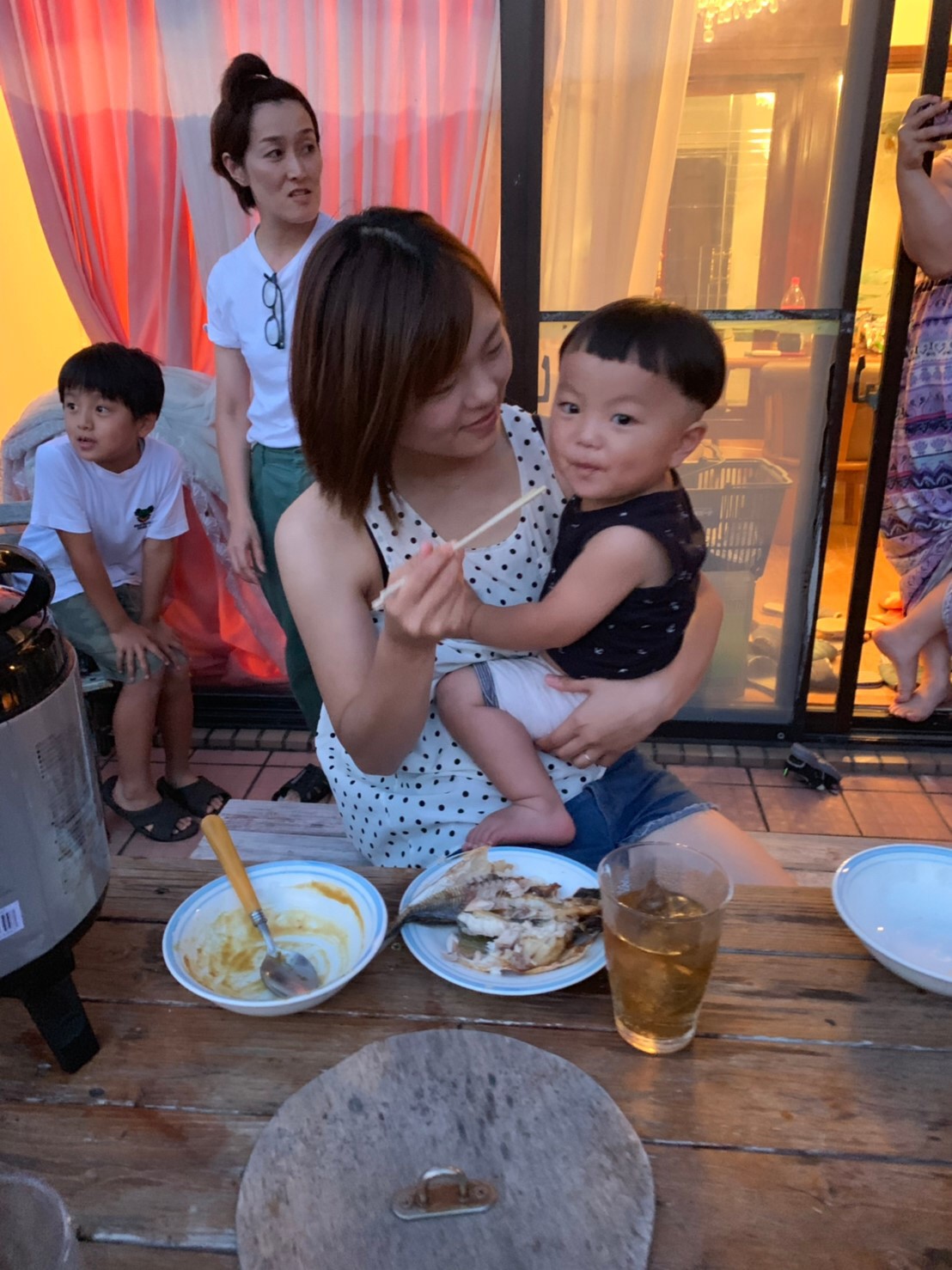 社内ウッドデッキにてBBQ中![]()